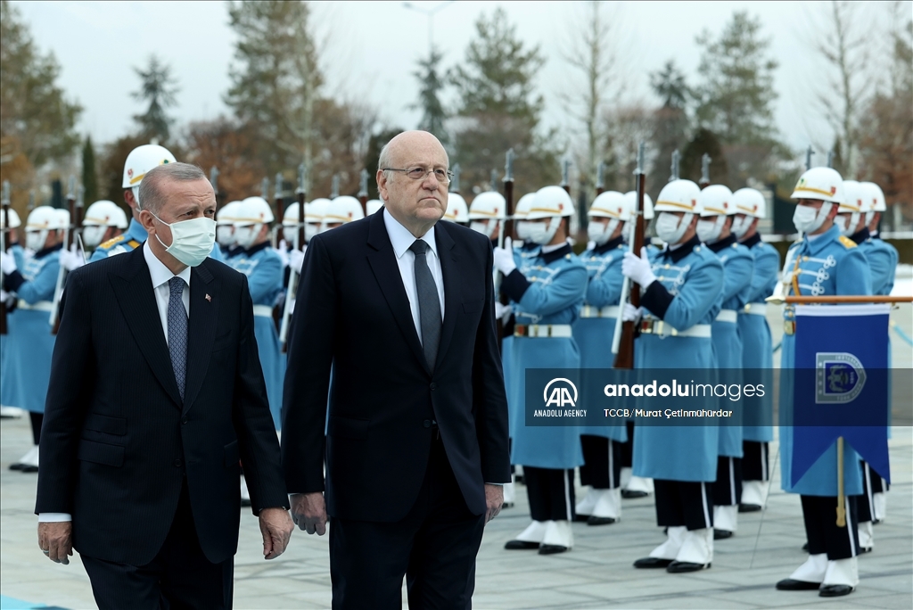 استقبل الرئيس التركي رجب طيب أردوغان، الثلاثاء رئيس الوزراء اللبناني نجيب ميقاتي، بمراسم رسمية في المجمع الرئاسي بالعاصمة أنقرة.