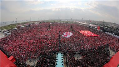 Miting prostor na Yenikapiju u Istanbulu može primiti 3,5 miliona ljudi, a veći dio njega je već ispunjen, iako do početka mitinga ima nešto manje od sat vremena.