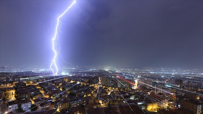 Munje su večeras obasjale nebo iznad Ankare, glavnog grada Turkiye, javlja Anadolu Agency (AA).