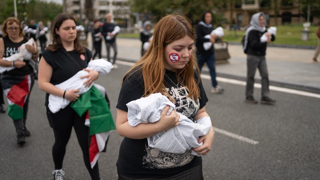 The Gernika-Palestina initiative has brought together thousands of people who have marched through the streets calling for an end to the Israeli attacks in Gaza, on April 25, 2026 in San Sebastian, Spain