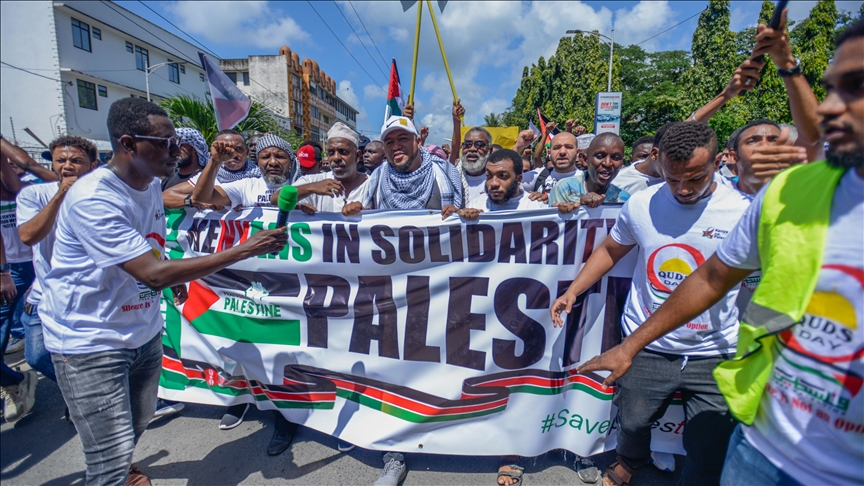 Hundreds of Kenyans in Mombasa demonstrated Saturday to express solidarity with Gaza Strip residents who are enduring an Israeli blockade and nonstop attacks.