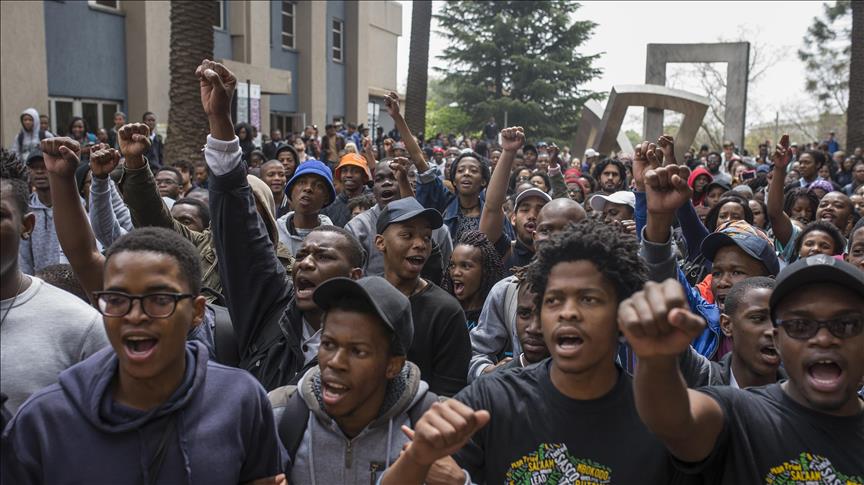 Protesting under the banner #FeesMustFall, students called for free tertiary education.