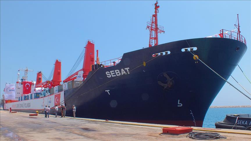 Turkey on Sunday sent a ship carrying 13,000 tons of food and humanitarian aid to Somalia from southern Mersin province.