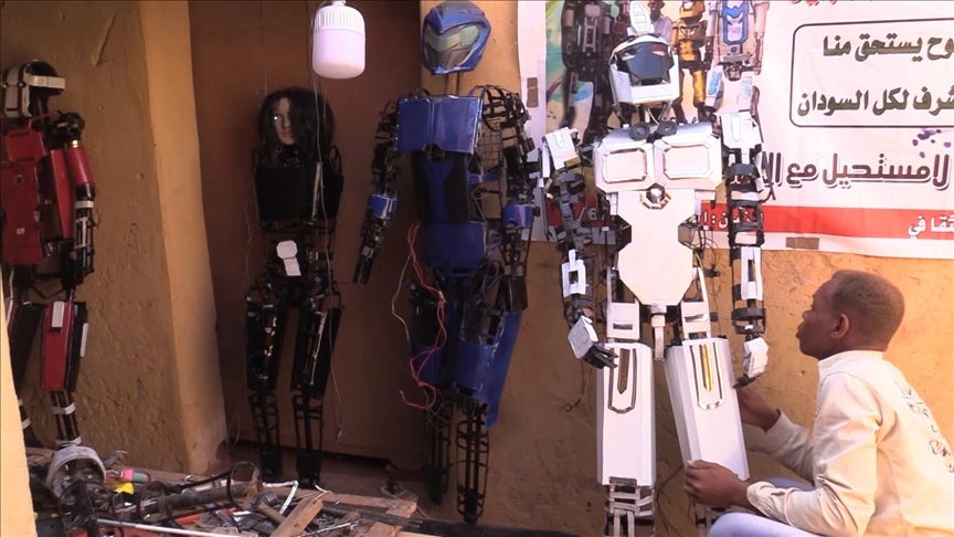 Moatasem Jibril, a young man from Sudan, is realizing his dream of conducting technological experiments to manufacture robots by using recycled electronic waste.