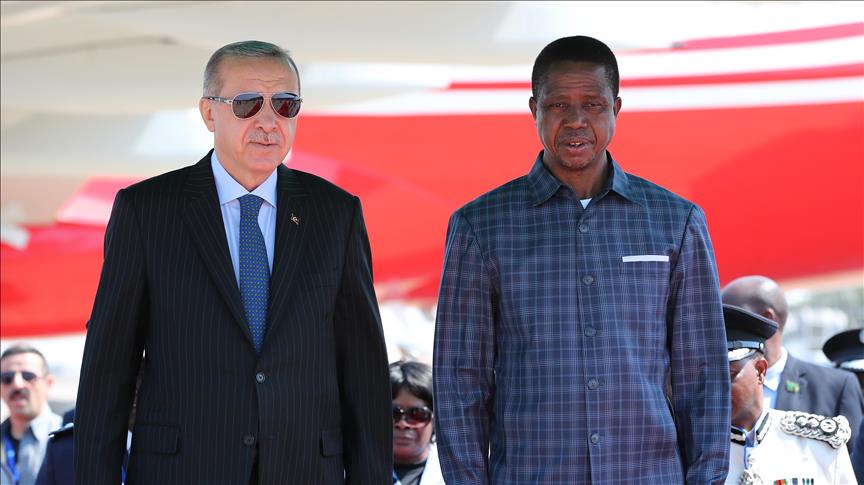 Erdogan arrived in Lusaka on Saturday in the first-ever official visit by a Turkish president to the East African country.