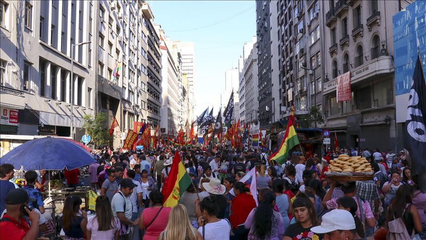 Bolivians living in Bolivia’s larger southern neighbor and left-wing NGOs gathered in front of the Bolivian Embassy in Argentina’s capital, Buenos Aires.