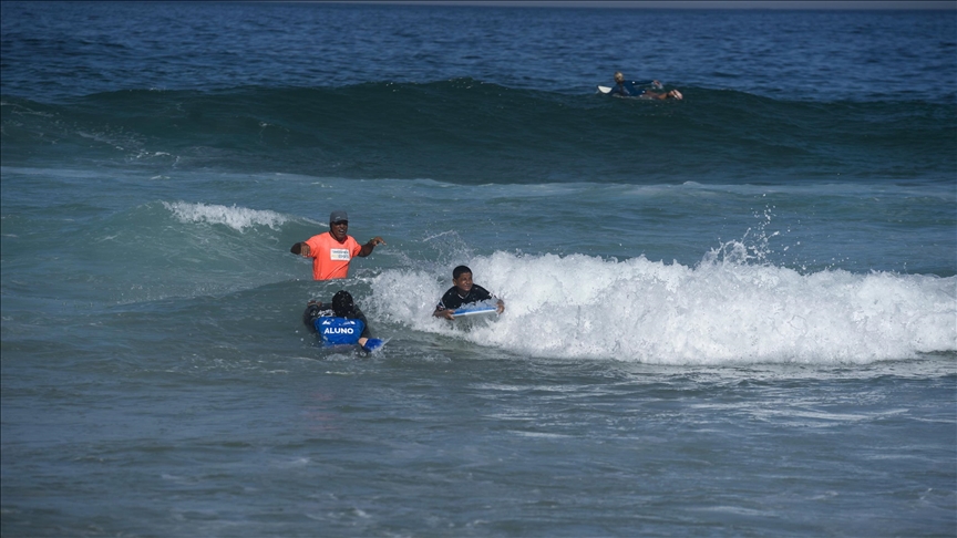 The Rocinha Surf School is based at the Rocinha Sports Complex and caters to approximately 300 children each year, fostering the virtues of hard work, perseverance, and dedication.