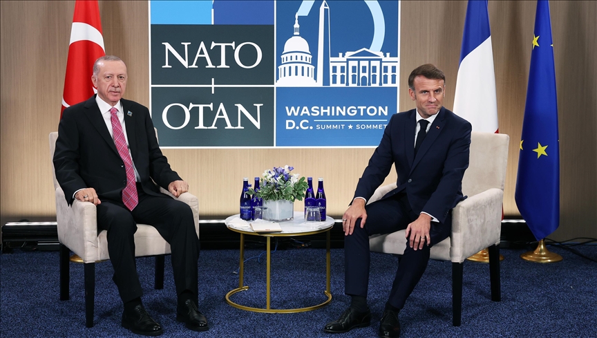 Erdogan and Macron held a closed-door meeting on the sidelines of the NATO summit in Washington where NATO leaders gathered Tuesday to mark the military alliance's 75th anniversary.