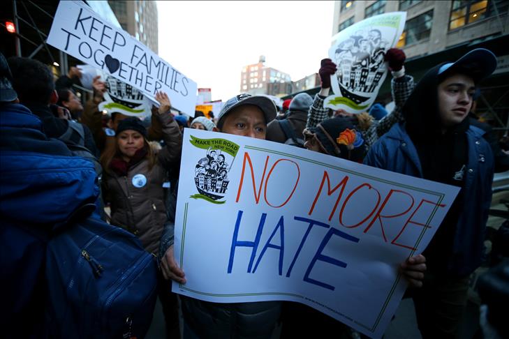 The demonstration is in defiance of President Donald Trump's controversial immigration policies that have included a crackdown on undocumented migrants, a proposed wall along America's southern border with Mexico and now defunct ban on migrants from seven Muslim-majority countries.