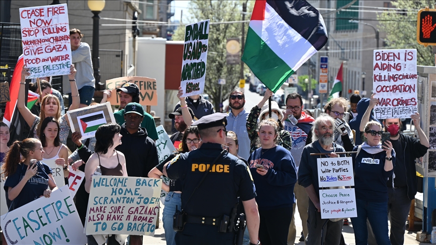 US President Joe Biden was confronted by protesters in his hometown of Scranton, Pennsylvania on Tuesday over his backing for Israel’s war on Gaza.