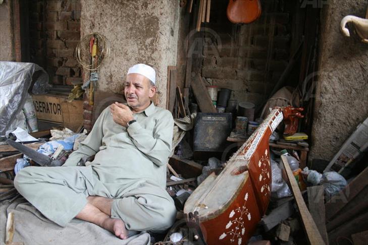 "We have been making rababs and santoors for the last 300 years," Zaz, sitting in the room, told Anadolu Agency as he sharpened a chisel on an old stone.