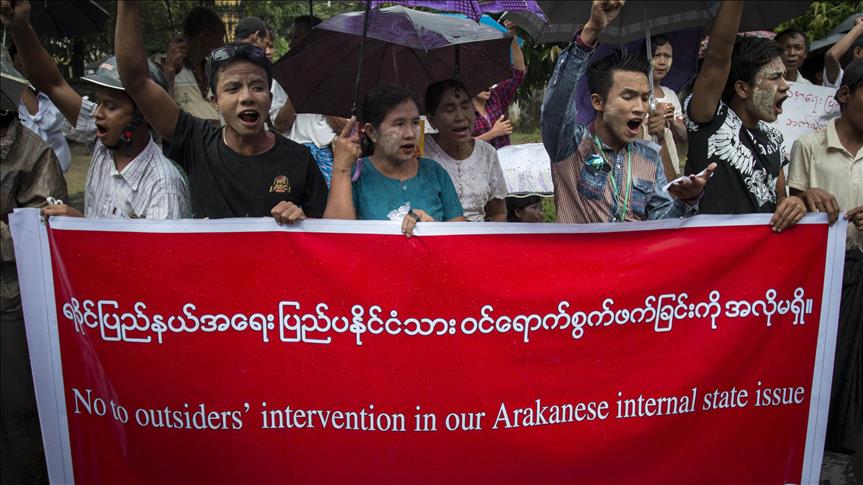 Protests greet ex-UN chief on arrival in west Myanmar