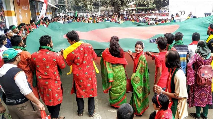 "We believe in communal harmony and progress of Bangladesh with the spirit of the 1971 Liberation War and ideology of the father of the nation Bangabandhu Sheikh Mujibur Rahman," Shimu Chowdhury, vice president of the platform, told Anadolu Agency following the rally.