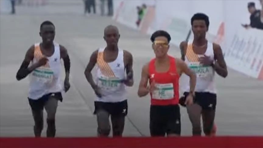 Three athletes from Kenya and Ethiopia were accused of slowing down at the end of Sunday's race to let their Chinese runner He Jie win, the South China Morning Post reported.