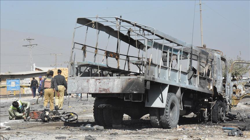 The suspected bomber, who acted alone, targeted a patrolling truck at busy Zargoon road- just 300 meters away from state assembly building- , provincial police chief, Moazzam jah Ansari told reporters.