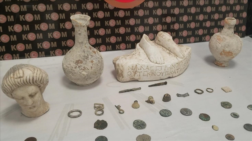 In Kutahya province, 101 artifacts, including sculptures, coins, and rings believed to be dating back to the Roman period, were recovered.