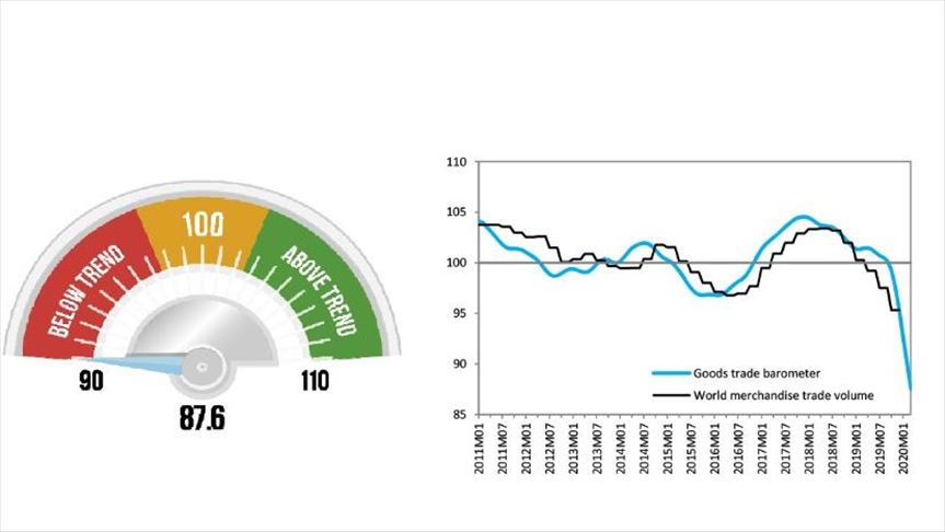 "The index currently stands at 87.6, far below the baseline value of 100, suggesting a sharp contraction in world trade extending into the second quarter," said the WTO in its latest assessment.
