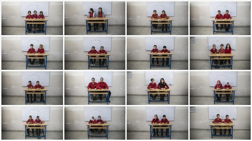 The twins and triplets, some of whom are Syrian, are studying at TOKI Istiklal elementary school in the city of Reyhanli, Hatay.