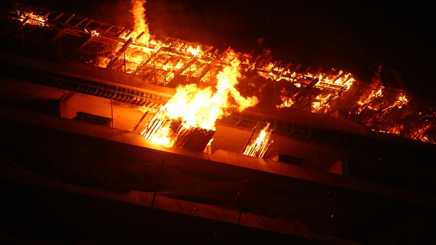 The fire engulfed three floors and covered a total area of over 5,000 square meters (53,820 square feet), threatening to consume the entire building.