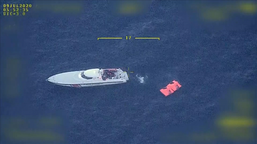 An unmanned aerial vehicle (UAV) footage on Friday showed a Greek coast guard ship leaving irregular migrants in the Aegean to die in the open sea, while Turkish coastal security forces lending them a helping hand.
