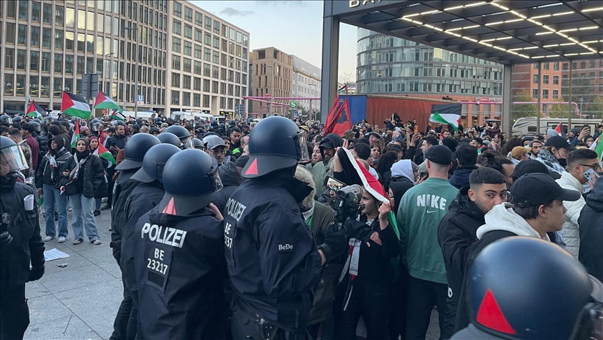 About a thousand people who had gathered Sunday in Berlin were not allowed to demonstrate in solidarity with Palestinians.