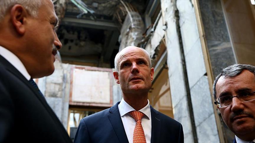 Blok toured the parts of the parliament that had been bombed during the defeated coup of July 15, 2016.