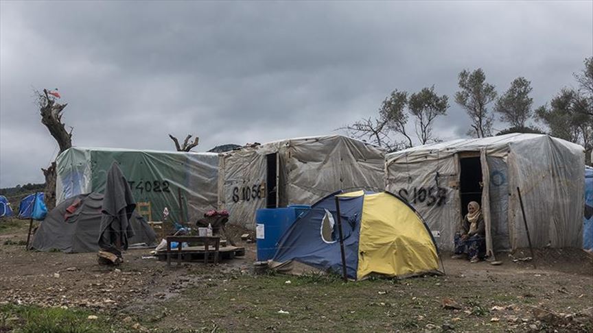The refugees fleeing war-stricken countries are forced to live in tarpaulin tents or pallet huts as there are not enough tents to accommodate them.