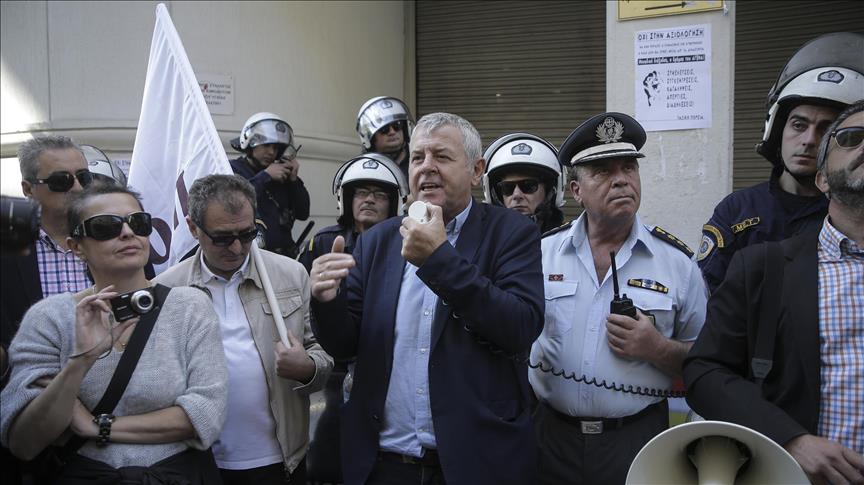 The protesters carried banners and posters reading: "Lesbos is not a place of exile, it is an island," and "Urgent solution to the refugee crisis."
