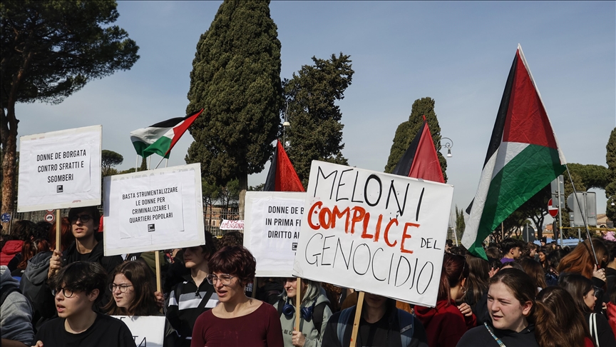 Palestinian flags were raised Friday in Italy during marches for International Women's Day in a powerful display of solidarity with women in the Gaza Strip.