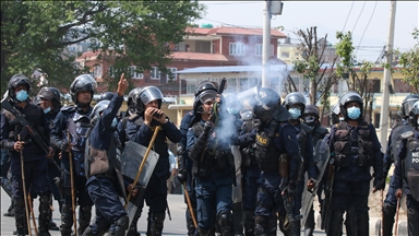 Police placed vehicles between the demonstrators and provocateurs to prevent the tension from escalating.