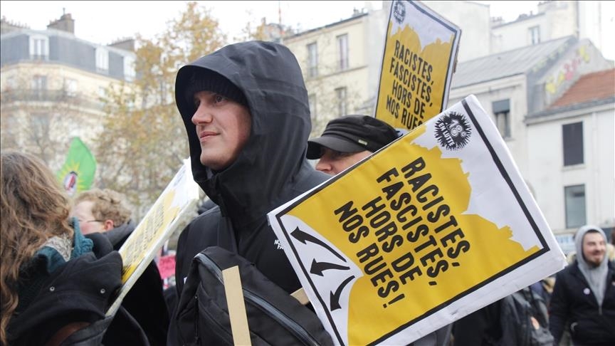 The demonstrators held banners saying "France, illegal" and "Racists, fascists, get off our streets" and chanted slogans such as "Solidarity with undocumented migrants" and "We are not dangerous, migrants are in danger."