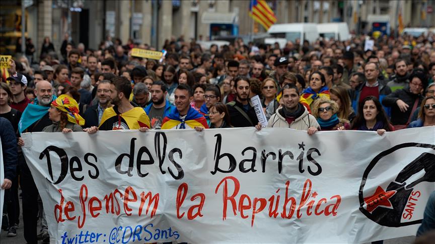Protestors are calling for the Spanish government to release eight former members of the regional government, including the vice-president, and the two leaders of pro-independence cultural associations, who are all being held on remand in Madrid.