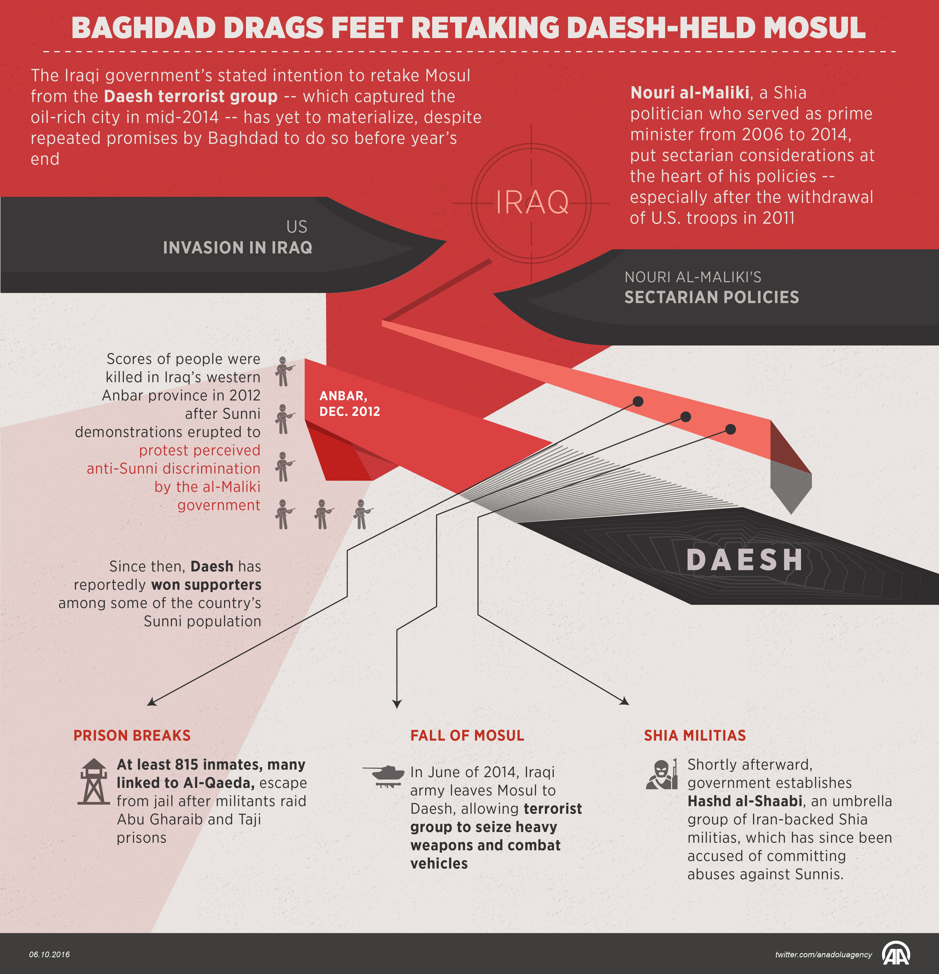 The Iraqi government’s stated intention to retake Mosul from the Daesh terrorist group -- which captured the oil-rich city in mid-2014 -- has yet to materialize, despite repeated promises by Baghdad to do so before year’s end.07 October 2016•Update: 07 October 2016