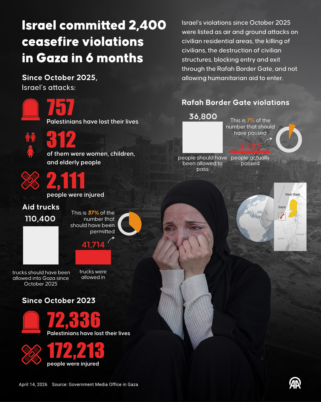 Israel committed 2,400 ceasefire violations in Gaza in 6 months