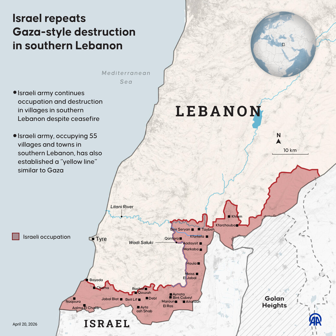 Israeli army is carrying out the same destruction in southern Lebanon as in areas it occupies in Gaza Strip, despite ceasefire.