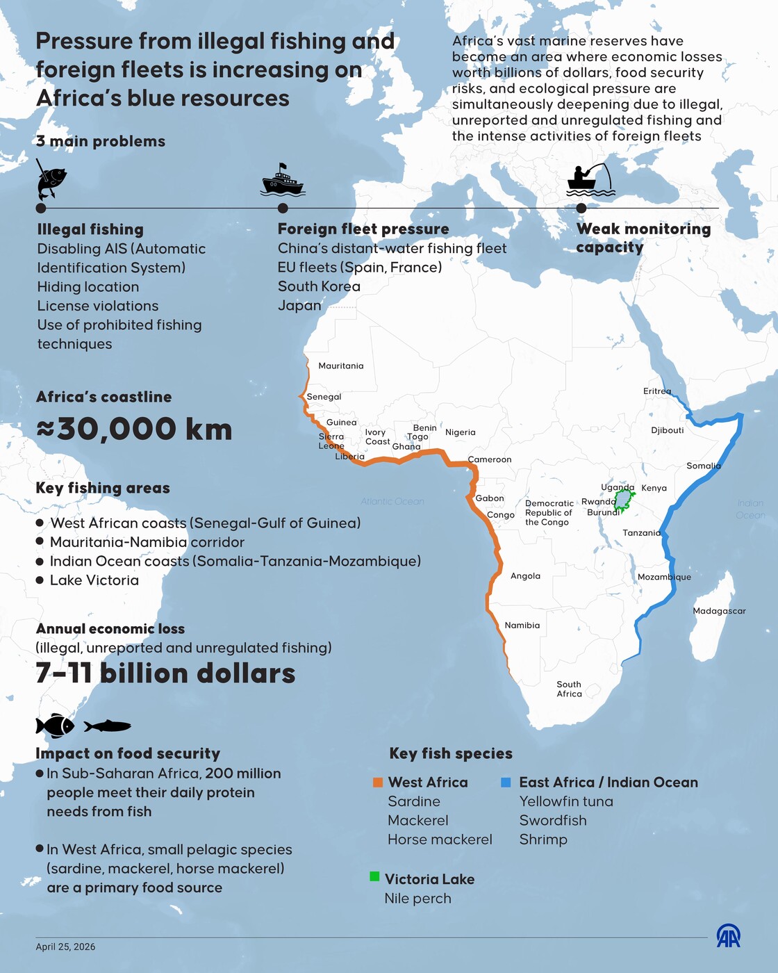Illegal practices like disabling AIS tracking system, hiding location and use of banned techniques strain key fishing zones across West and East Africa25 April 2026•Update: 25 April 2026