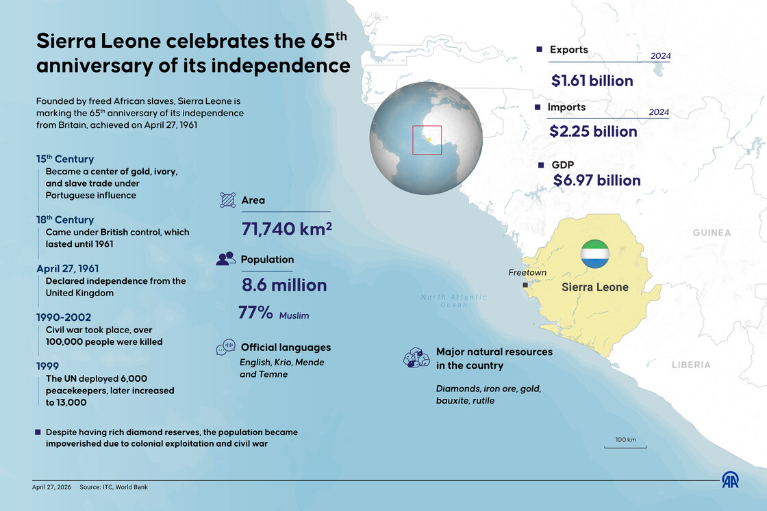 Founded by freed African slaves, Sierra Leone is marking the 65th anniversary of its independence from Britain, achieved on April 27, 1961Efnan Ipsir