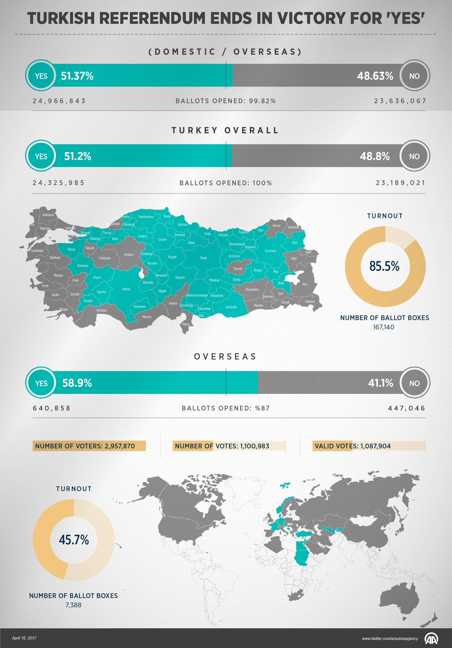 Turkish referendum ends in victory for 'Yes'