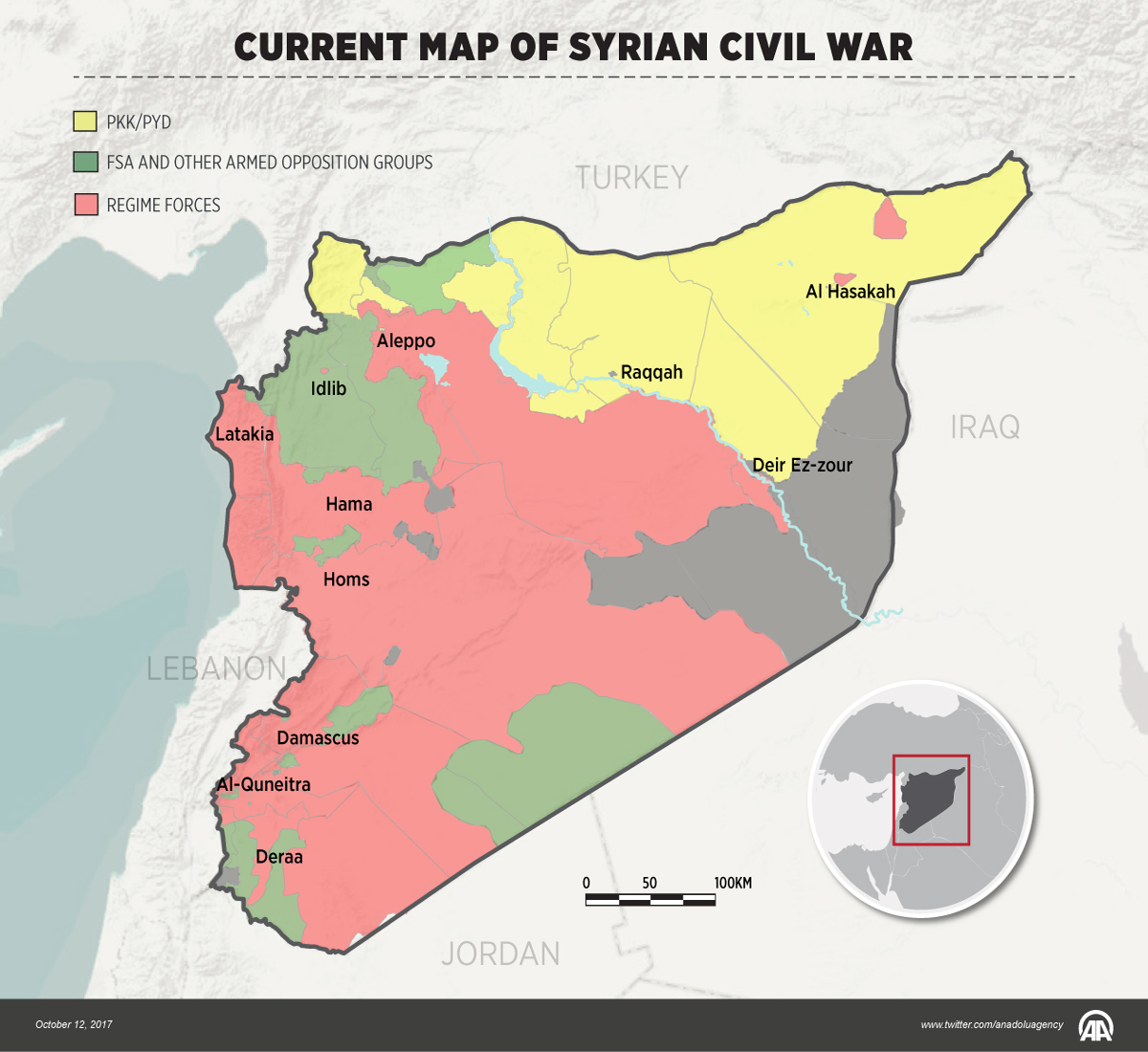 Current map of Syrian civil war