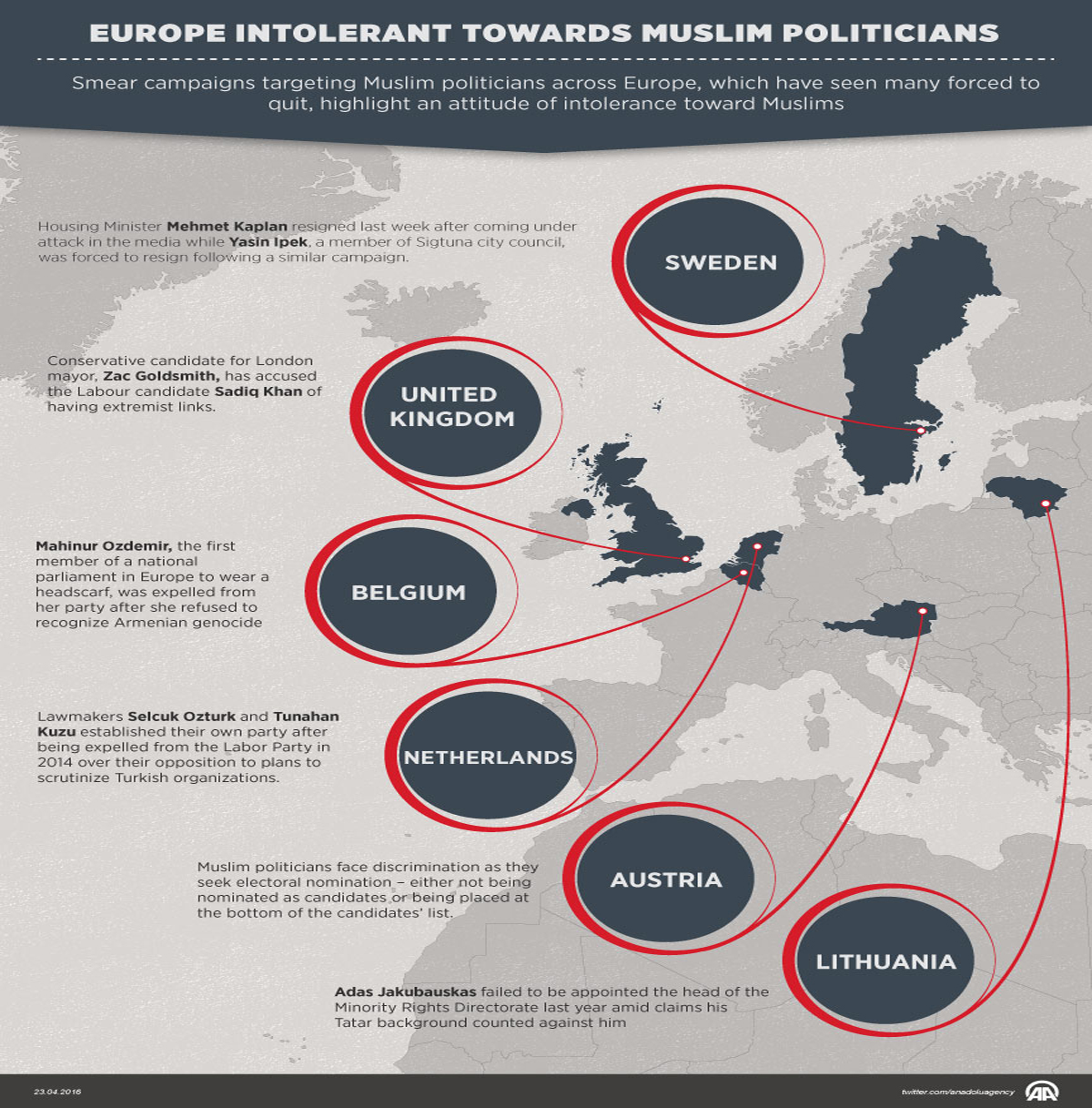 Smear campaigns targeting Muslim politicians across Europe, which have seen many forced to quit, highlight an attitude of intolerance toward Muslims