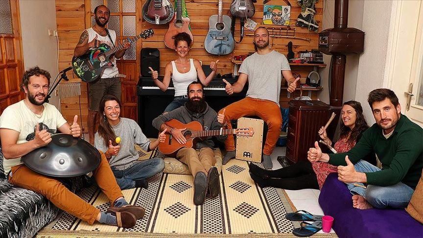 When six French nationals and a Spaniard found themselves high and dry due to traveling restrictions in the Aegean Mugla province, musician Alper Kaya welcomed them to his home, where they all now enjoy playing music or doing yoga.