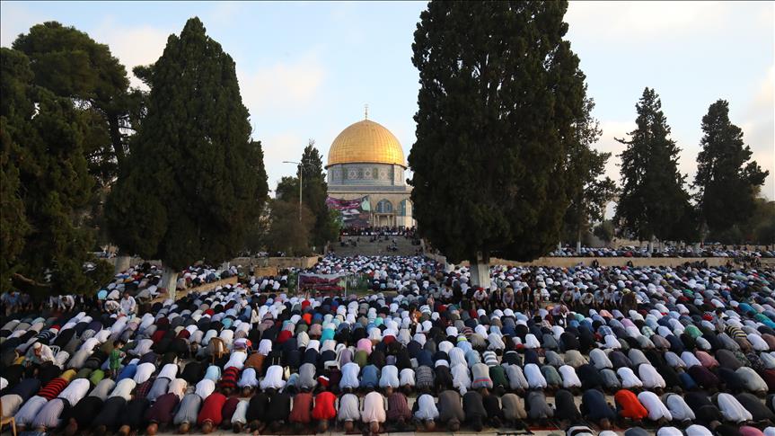 Tens of thousands of Muslims, mostly Palestinians, performed Eid al-Adha prayers Tuesday at East Jerusalem’s Al-Aqsa Mosque amid a heavy Israeli security presence in and around Jerusalem’s Old City, witnesses said.
