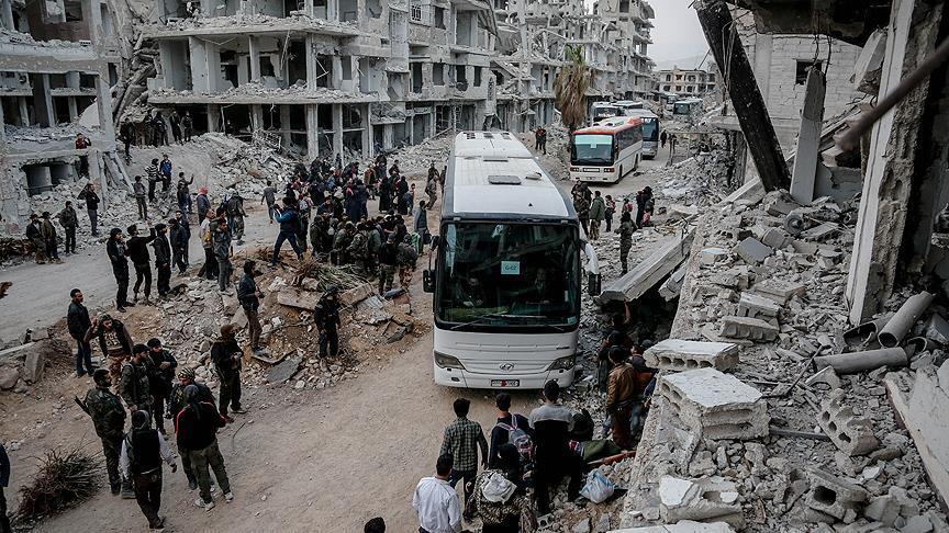According to Anadolu Agency correspondents based in the area, the evacuees were taken from the towns of Arbin, Zamalka, and Ain Tarma.