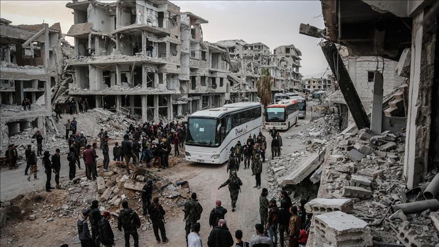 According to Anadolu Agency correspondents based in the area, the evacuees were taken from the towns of Arbin, Zamalka, and Ain Tarma.