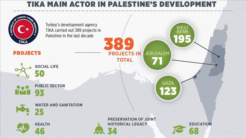 Turkey’s international aid agency (TIKA) has helped meet the needs of Palestinians with 389 development projects over the course of the last decade.