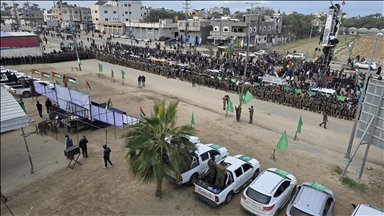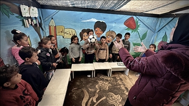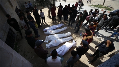 Palestinians hold Turkish flag and Turkish President Recep Tayyip Erdogan's portrait to celebrate his presidential election success as they gather in Gaza City, Gaza