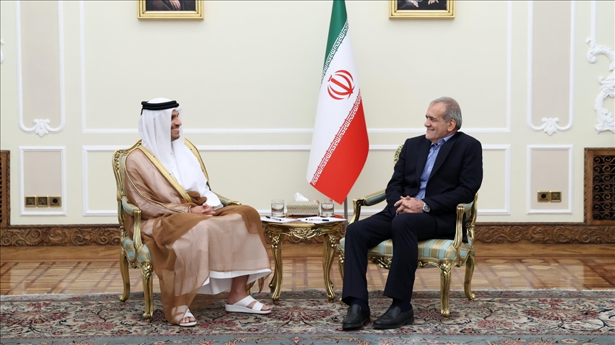 During their meeting, Al Thani and Pezeshkian discussed "developments in the region, and ways to maintain the region's security and stability."