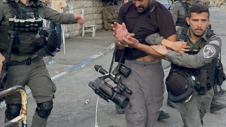 Palestine’s Al-Qafiyah television reporter Ziynet al-Halawani and cameraman Wahbi Mekkiye were detained by the Israeli police while they were following a protest in East Jerusalem's Sheikh Jarrah neighborhood in support of the Palestinians.