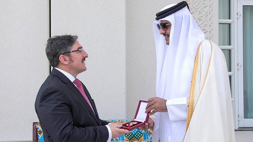 Qatari Emir Tamim bin Hamad al-Thani on Wednesday presented outgoing Turkish Ambassador Ahmet Demirok with Qatar’s prestigious Al-Wajbah medal in recognition of the diplomat’s role in promoting bilateral cooperation, Qatar’s official press agency reported.