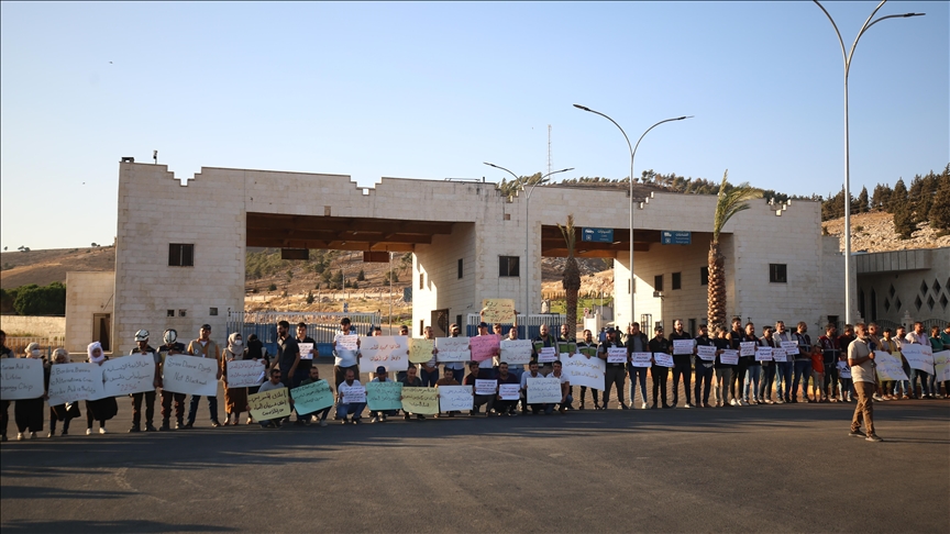 Various NGO officials, who assembled in front of the Bab al-Hawa border gate, situated opposite the Cilvegozu border gate in Reyhanli district of southern Hatay province, carried banners in both English and Arabic that read "Not only the border gate, but the lifeline" and "Humanitarian aid is not a weapon."